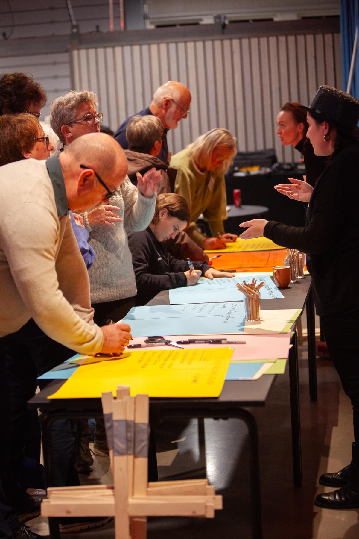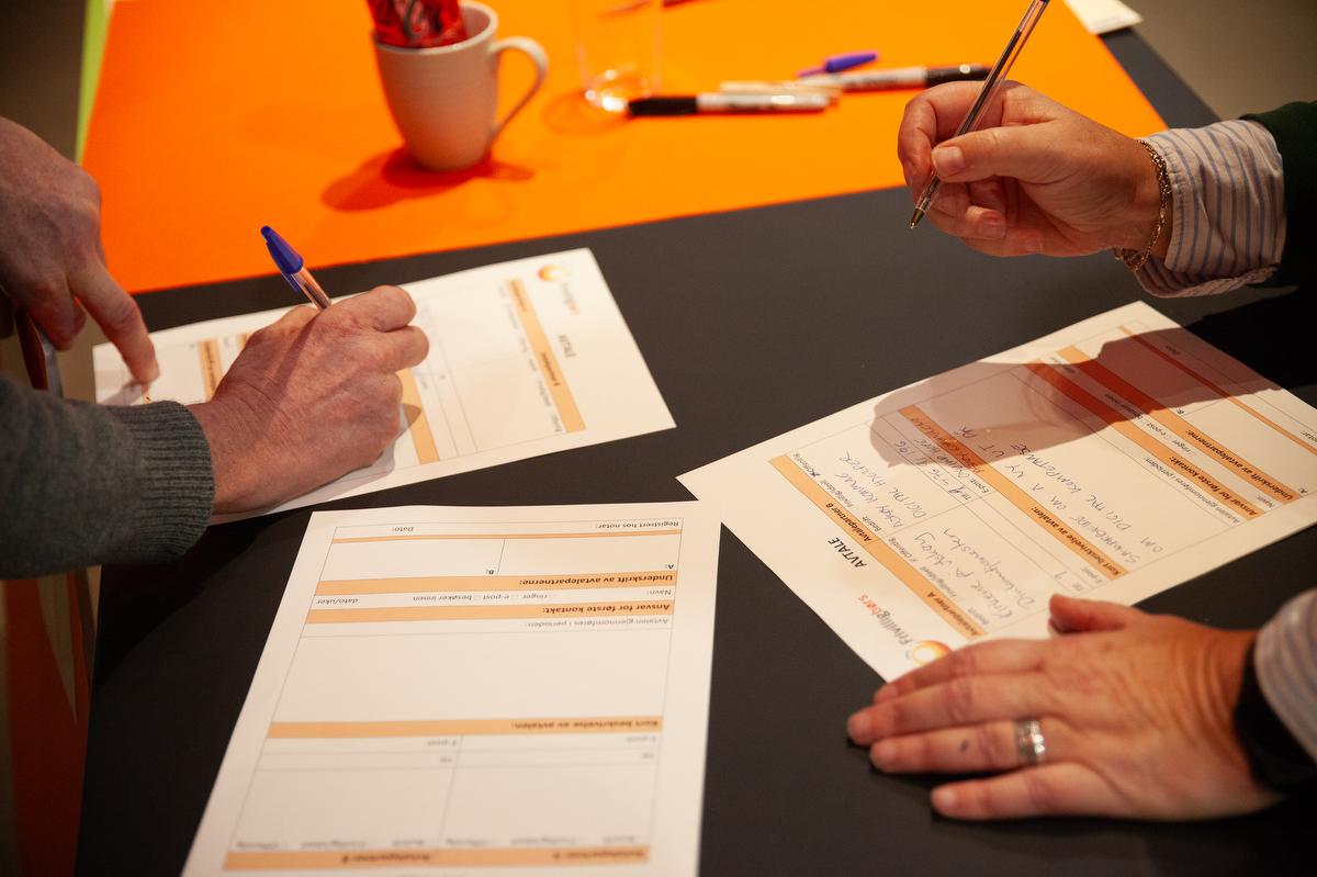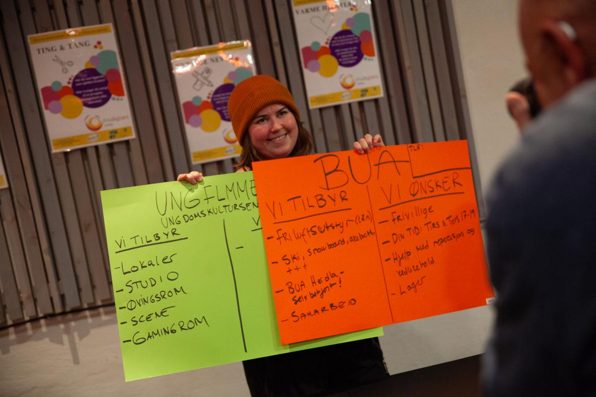 Deltakerne gikk rundt i lokalet og så på hverandres plakater, delte informasjon om hva man selv hadde av aktiviteter og hvordan knytte samarbeid. En god time med mingling resulterte i hele 34 avtaler. Noen mer konkrete enn andre. Én etter en kom de opp på scenen for å registrere avtalen sin hos børsmegleren. For hver avtale fikk de plinge i den gjeve bjellen som signaliserte at en ny avtale var inngått. Deltakerne fikk hver sin refleks de kunne henge på genseren sin for å vise andre hvor mange avtaler som sin organisasjon hadde inngått i løpet av kvelden. Selv om det ikke var konkurranse om å få flest reflekser, skader vel ikke sunn konkurranse noen. Bergen og Omland Friluftsråd hadde til slutt syv reflekser på sin genser - uoffisiell vinner.